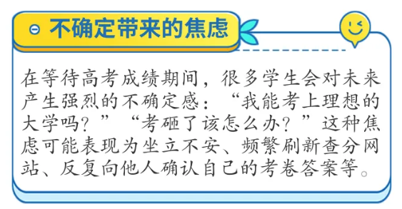 学生在高考后出现较为严重的焦虑或抑郁情绪,如果未能得到及时干预,可能会带来比较大的负面影响。一方面,短期内的情绪障碍干扰考后身心状态的整体调整,影响学生志愿填报时的理性决策;导致学生暑期生活作息紊乱、沉迷网络,不利于身心健康;另一方面,学生长期的焦虑或抑郁状态可能延续至大学阶段,表现为入学适应困难、学习动力不足等;进一步降低自我价值感,影响其未来面对挑战的信心。