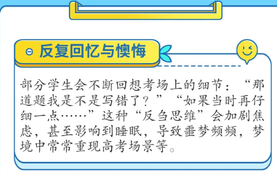 高考作为每个学生人生中的重要节点,是一场知识的较量,更是一次心理的考验。高考结束后,很多学生本以为会如释重负,却发现自己陷入另一种心理困境——反复回忆考试细节、懊悔发挥失常、担心成绩不理想,甚至因此夜不能寐,梦中仍在考场奋笔疾书……